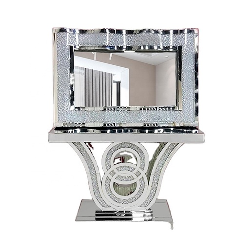 उच्च गुणवत्ता वाली लक्जरी स्पार्कलिंग कुचला हीरा दर्पण सेट मबल्स के साथ दर्पण सेट मबल्स मे्युबल्स के साथ